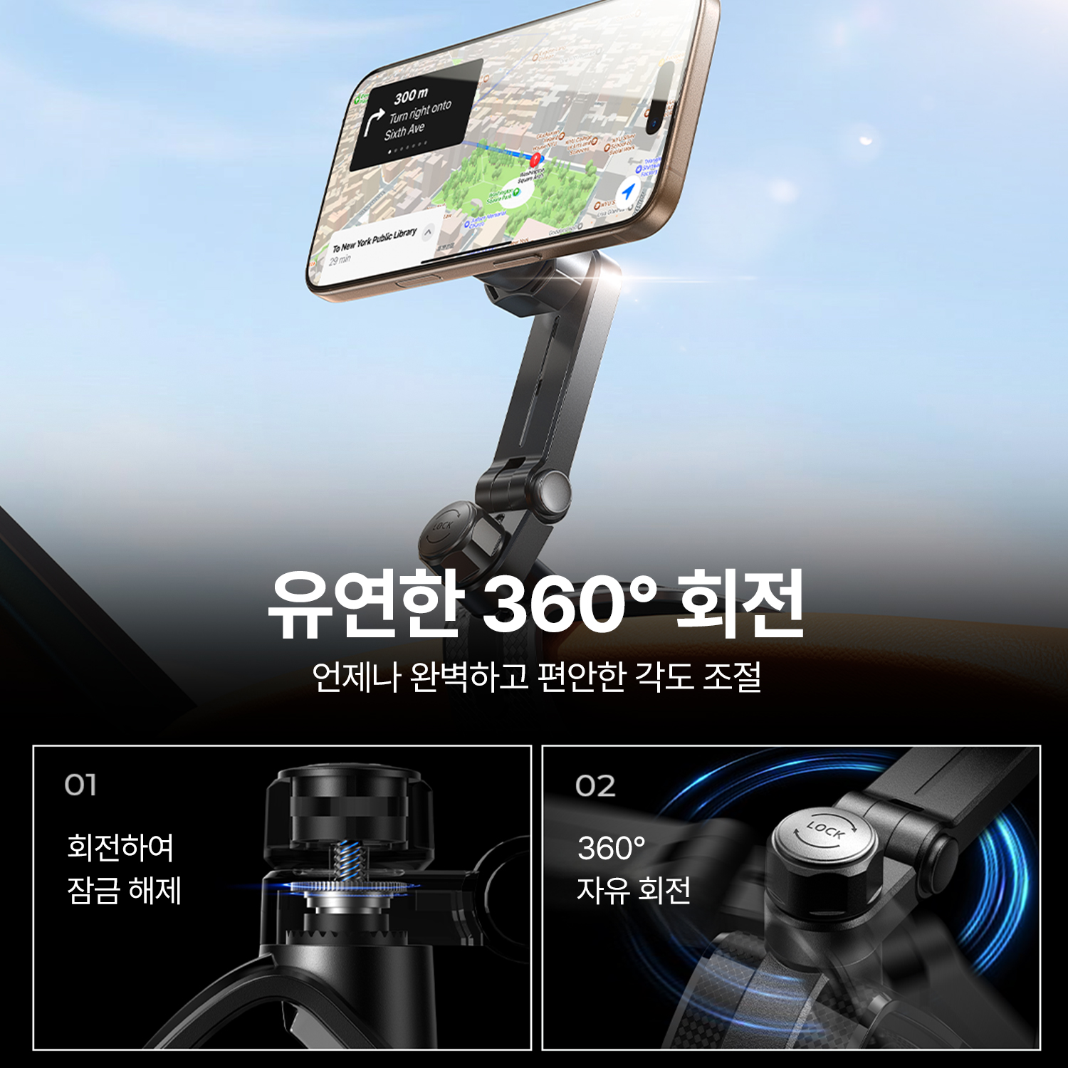 • 360도 회전. 원하는 각도로 조정 가능하여 다양한 시야 확보가 가능합니다.
