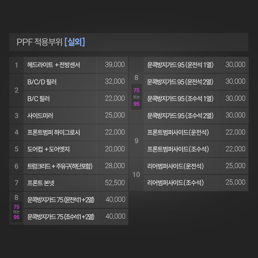 - 튼튼한 소재. PPF필름은 고강도 소재로 제작되어 외부 충격에 강해요.